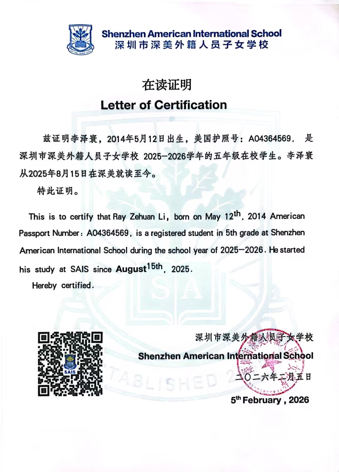 • admissions@szsais.org